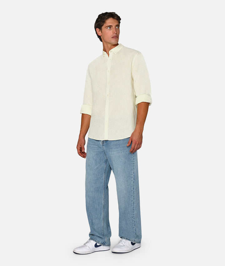 The Tennyson Linen Blend Long Sleeve Shirt - Custard