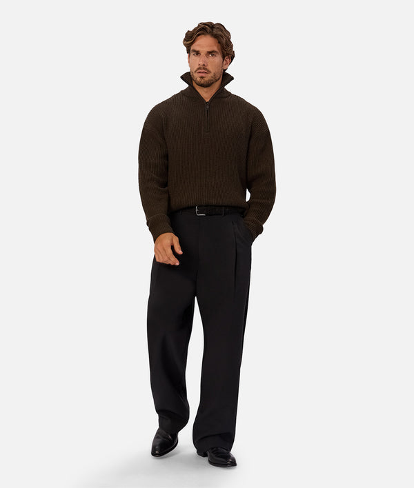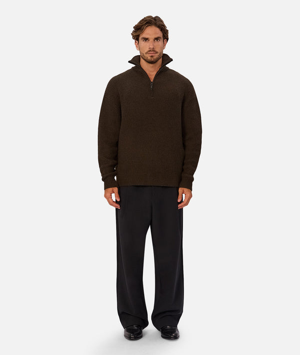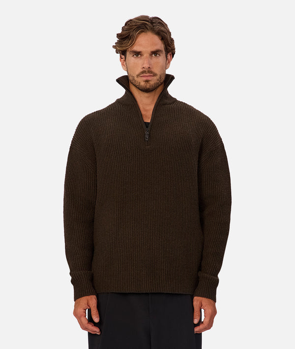 The Montreal Zip Neck Knit brings a clean, elevated look to everyday wear with its laid-back fit and minimalist design. Perfect for transitional weather.