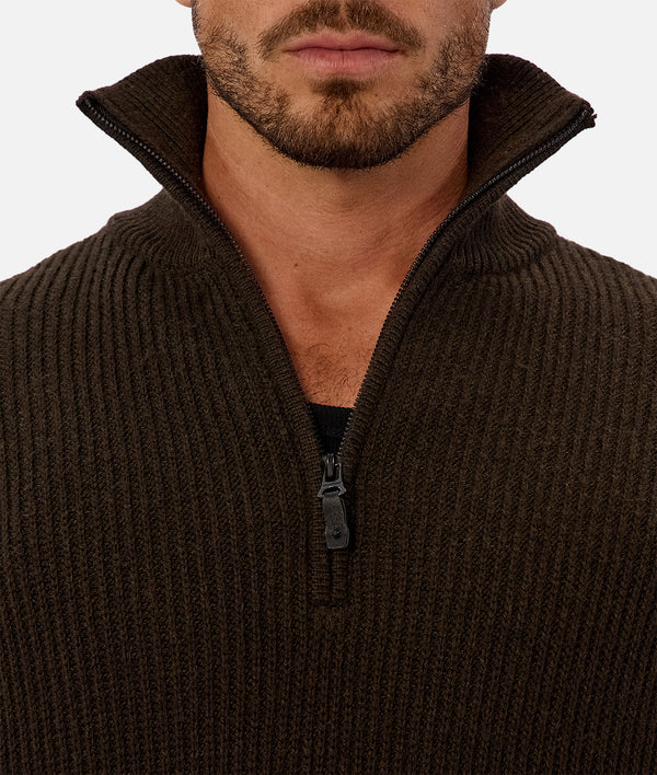 The Montreal Zip Neck Knit - Dark Military