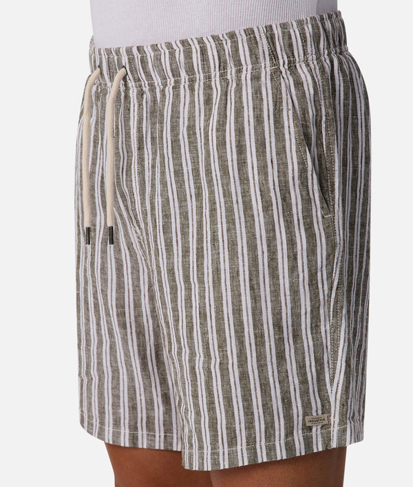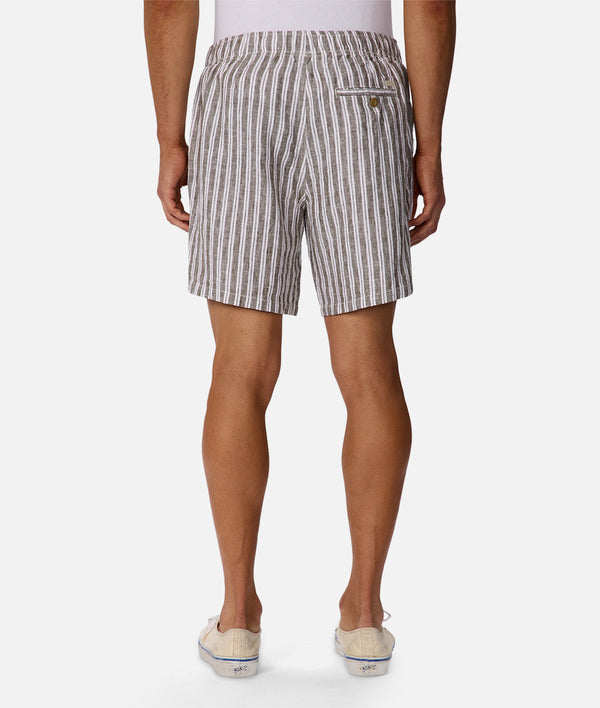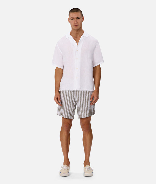 Crafted from pure linen, The Segunto Short delivers effortless elegance in a refined buckwheat tone. The subtle stripe pattern adds visual interest while maintaining understated sophistication. Perfect for warm weather dressing, this versatile piece transitions seamlessly from casual to smart-casual occasions.