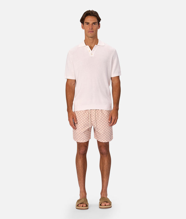 • Designed with an above-the-knee fit, The Panama Swim Short delivers comfort and ease both in and out of the water. Made from 100% quick-dry polyester, they feature an elastic waist with drawcord fastening, side pockets and a patch-closure back pocket for added function. Finished in a unique geometric pattern, they bring standout style to poolside days and beach outings.